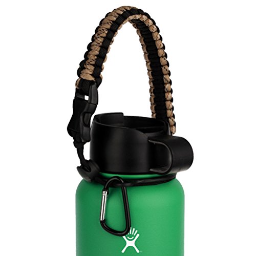 The Hydro Flask Handle, Flaskars Paracord Carrier Survival Strap Cord with Safety Ring and Carabiner for Hydro Flask Nalgene CamelBak Wide Mouth Water Bottles (Sand+Black) it you must have for hydro flask.